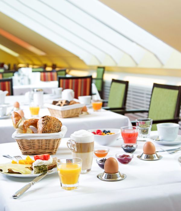 Erleben Sie unser kulinarisches Verwöhnprogramm — unser beliebtes Langschläfer-Frühstück am Morgen, ein Kuchen-Buffet am Nachmittag und ein ausgewogenes Abendessen. Unsere neuen Angebote mit Halbpension sind ab 1. Juni verfügbar.