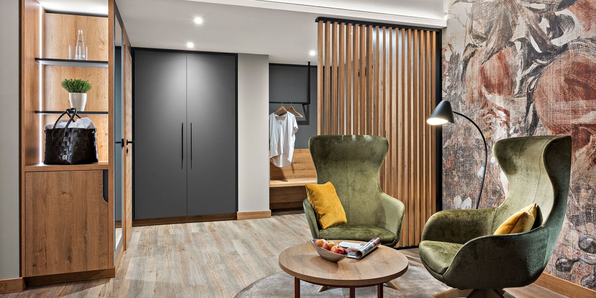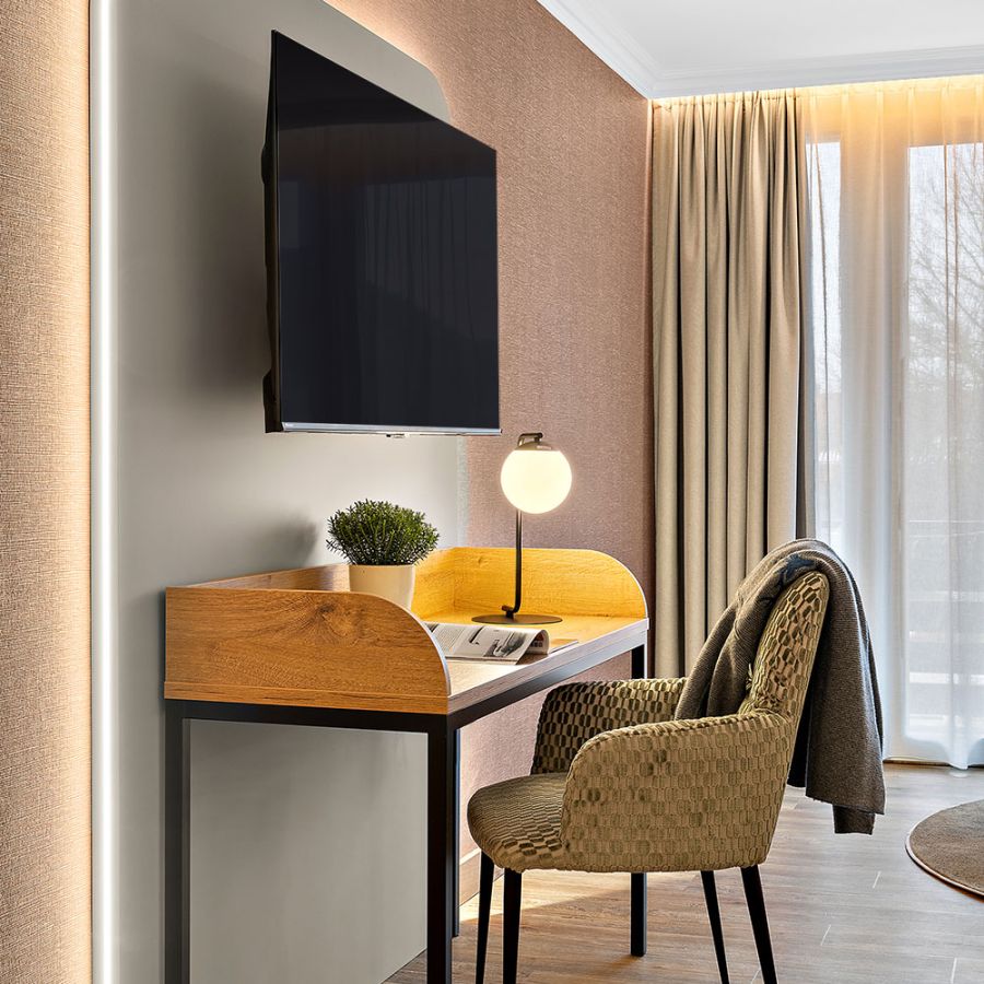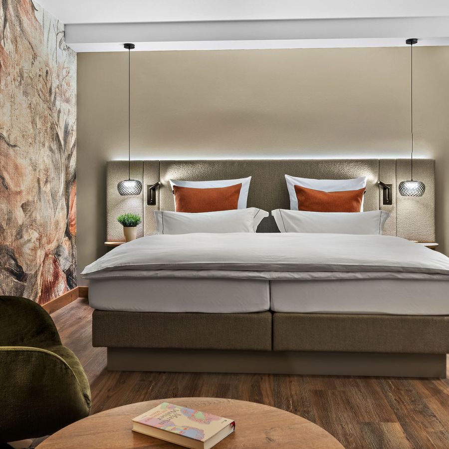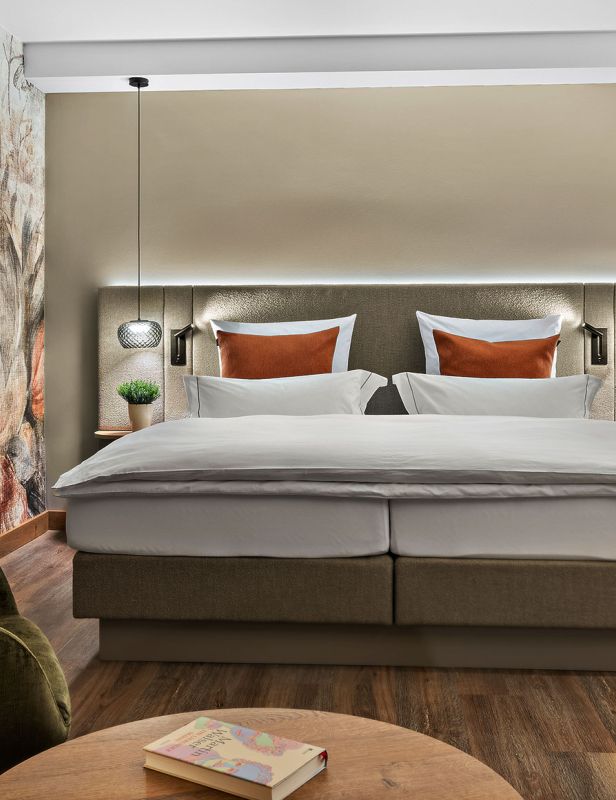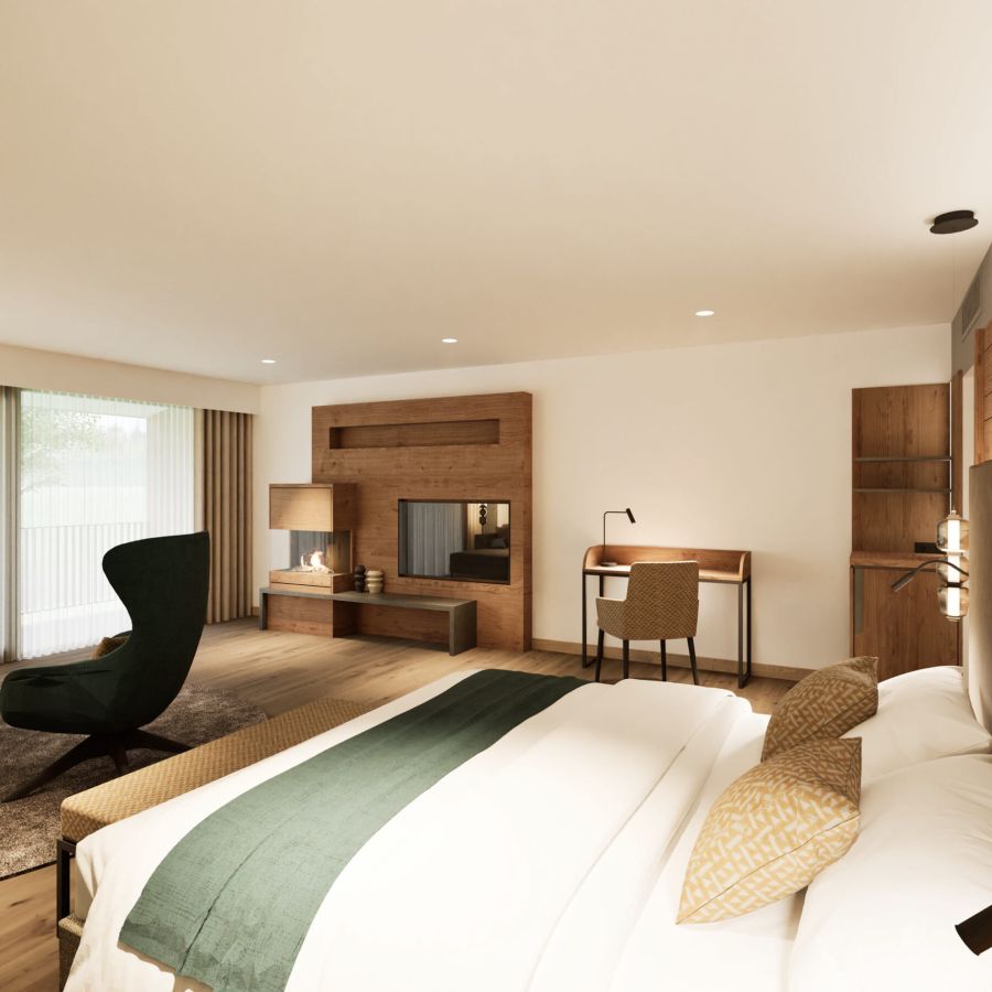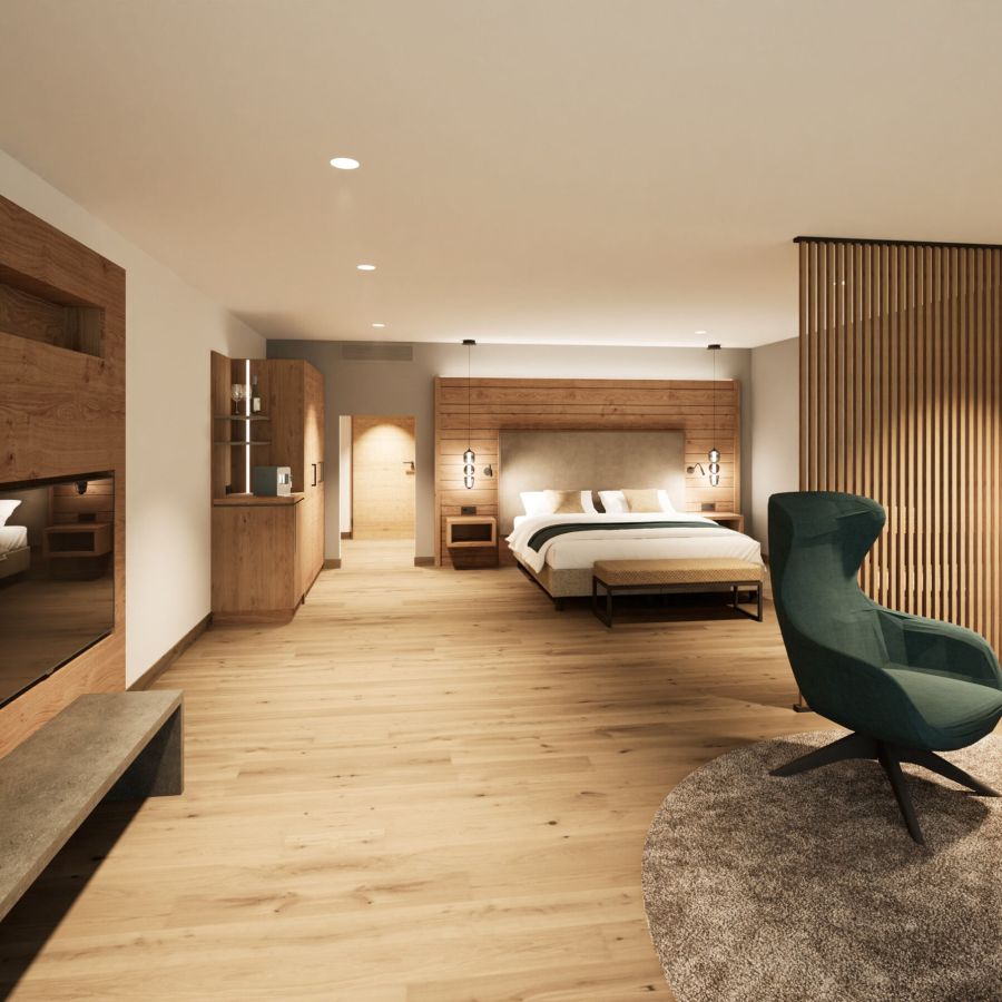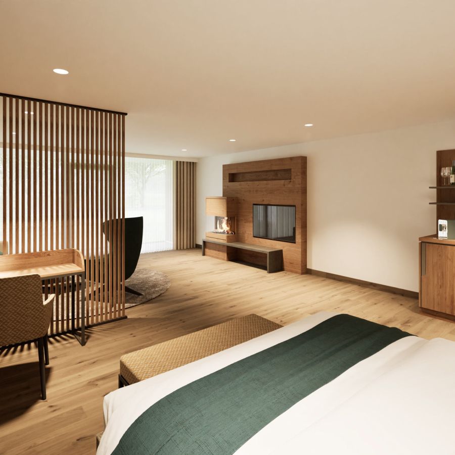 NEU ab Sommer 2026 – Unsere frisch renovierten Junior Suiten verbinden modernes Design mit großzügigem Raumgefühl. Freuen Sie sich auf eine stilvolle Unterkunft für erholsame Tage im Churfürstenhof Bad Birnbach.