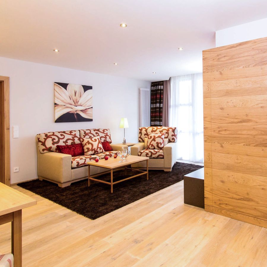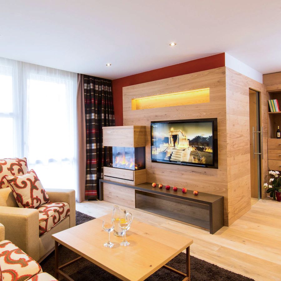 Viel Platz und eine ruhige Atmosphäre erwarten Sie in der Suite Royal. Ein Schlafzimmer mit 2 m breitem Doppelbett, ein separater Wohnbereich mit Elektro-Kamin sowie das Komfortbad mit Raindance-Dusche schaffen beste Voraussetzungen für erholsame Tage in Ihrem Spa-Urlaub im niederbayerischen Rottal.