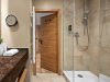 Geräumiges Badezimmer mit Raindance-Dusche, Doppelwaschbecken, WC & Föhn